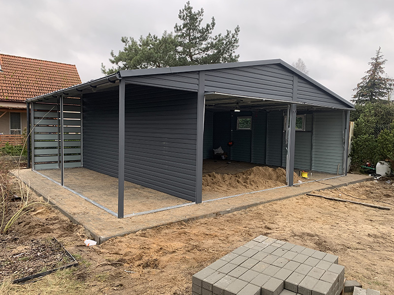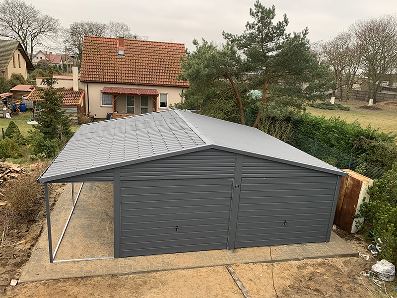 Dach dwuspadowy z blachodachówką zapewnia nie tylko doskonałą ochronę przed warunkami atmosferycznymi, ale także niewątpliwie dodaje uroku całej konstrukcji. Pełne orynnowanie oraz filc antykondensacyjny to dodatkowe elementy, które zapewniają długotrwałą trwałość i bezpieczeństwo Twojego pojazdu.