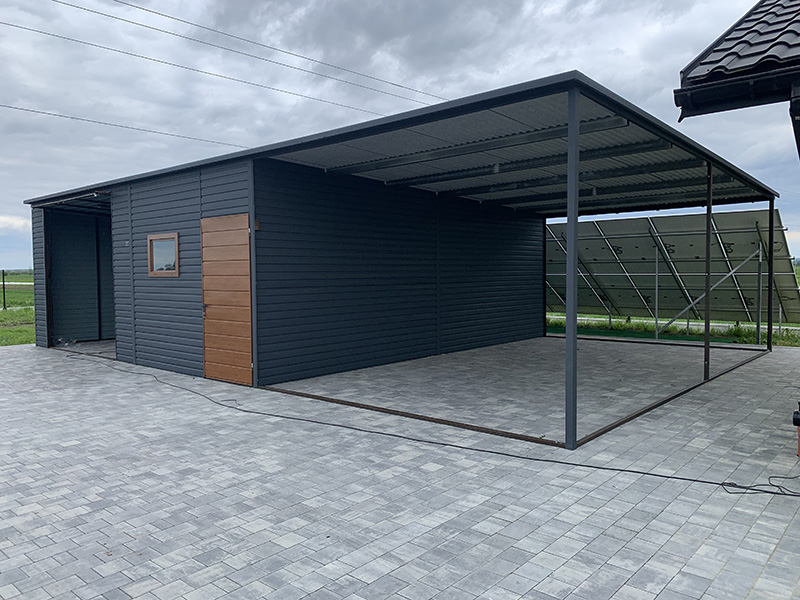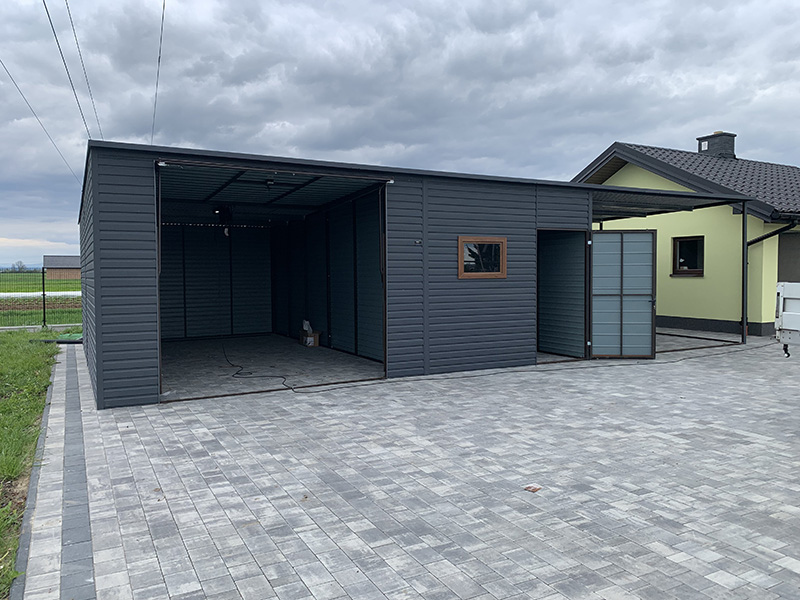 Za jedyne 31000zł, otrzymujesz kompletny garaż o imponujących wymiarach, solidnej konstrukcji i eleganckim wykończeniu. Puste ściany wiaty i profilowa konstrukcja to jego kolejne zalety.