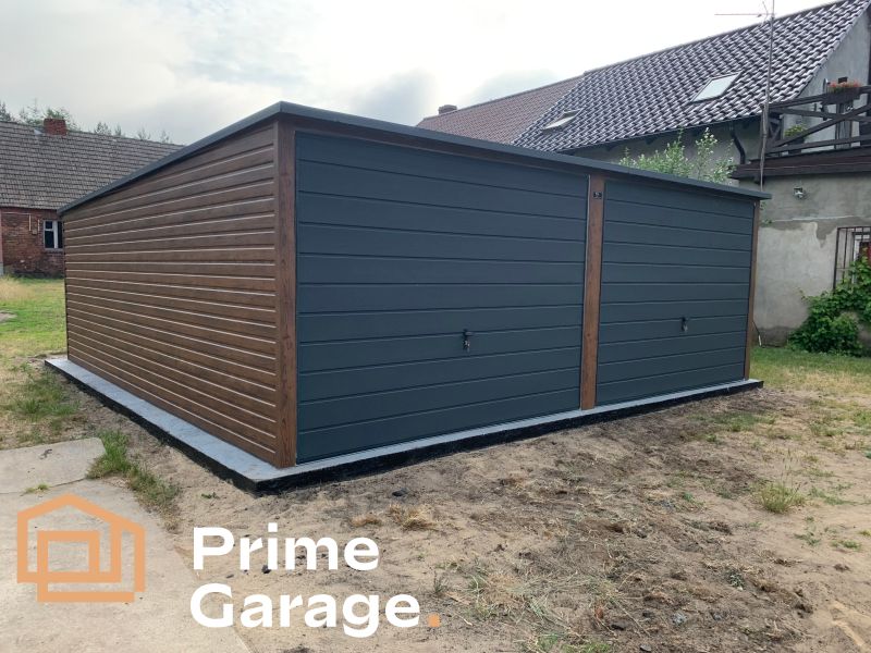 Garaż: szer: 6m x dł: 6m orzech, dach spad na tył