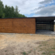 - 2 x brama uchylna do góry, przetłoczenia poziome szersze, ciemny złoty dąb,